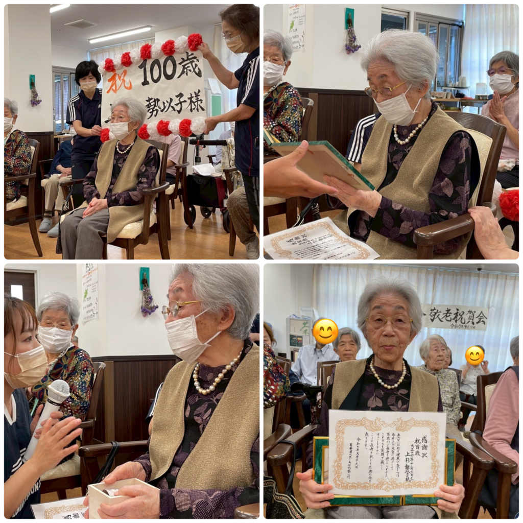ほの香には100歳を迎えられた方がいらっしゃり、みんなでお祝いしました。